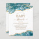 Budget Agate Geode Turquoise Turquoise Blue and Gold Foil Spring ou Summer Baby Shower Invitations - comprend un script moderne magnifique et élégant pour la célébration spéciale de la Mère pour un nouveau bébé garçon ou petite fille.