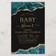Budget Agate Geode Noir et Turquoise Turquoise Bleu et Or Foil Printemps ou été Baby Shower Invitations - comprend un script moderne magnifique et élégant pour la célébration spéciale Mère pour être pour un nouveau bébé garçon ou bébé fille.