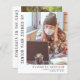 Faire-part de remise de diplômes amusant mais stimulant pour ces temps-ci. Le devant présente "Senior Year Zoomed By" dans la typographie moderne et une photo de votre diplômé de 2022, peut-être dans un masque facial ou sur une classe en ligne de l'école à la maison; sous personnalisez avec son nom, l'école ou le collège et année de classe. Au contraire, ajoutez une photo supplémentaire, un message de félicitations et un message plus personnel comme ses plans futurs.