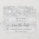 Une petite fille et tendance Enregistrer la carte Date pour une fête d'anniversaire de 40e (ou tout âge). Un arrière - plan métallique faux argent moderne décoré avec de la poussière de parties scintillant. Personnalisez et ajoutez une date et un nom/âge 40. Lettres de couleur grise. Le texte : Save the Date est écrit avec un grand script de style à la main tendance.