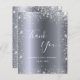 Un carte de remerciements pour un 50ème anniversaire (ou tout âge). Une couleur arrière - plan à l'aspect métallique faux argenté. Avec de la poussière de parties scintillant fausse. Sur le devant, un script écrit à grande main et le texte : Merci, votre texte, titre et une date. Retour : personnalisez et ajoutez Votre note de remerciement et votre nom.