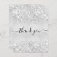 Un carte de remerciements d'anniversaire féminin et élégant. Une couleur arrière - plan à l'aspect métallique faux argenté. Avec de la poussière de parties scintillant fausse. Sur l'avant grand main écriture et le texte : Merci. Retour : Personnalisez et ajoutez Votre note de remerciement et votre nom. Le nom est écrit avec un script de style moderne écrit à la main avec des swashes. Pour que les swashes ne suppriment que le nom de l'échantillon, laissez les espaces ou émoticônes devant et après le nom.