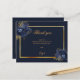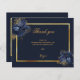 Une carte de remerciements simple et élégante avec photo. Un arrière - plan bleu foncé, un cadre faux or et des fleurs bleues. Personnalisez et ajoutez votre note de remerciement.