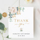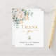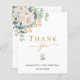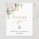 Un carte de remerciements d'anniversaire moderne et élégant de 50ème (ou tout âge). Un arrière - plan blanc chic. Décoré d'un blanc floral, de fleurs (pivoine) et de feuilles d'eucalyptus vert aquarellés, de sprigs, de verdure et d'un faux doré. Lettres noires et dorées. Sur le devant le texte : Merci, nom, et une date. Retour : Modèle pour Votre mot de remerciement et nom.