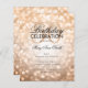 Elégant design "Invitation de fête d'anniversaire" avec éclat de lumières en cuivre avec texte personnalisé.