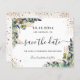 Une soirée branchée Save the Date pour un 40e anniversaire (ou tout autre âge). Un élégant arrière - plan blanc décoré d'eucalyptus, de verdure, de feuillage doré et de poussière de parties scintillant en faux or. Personnalisez et ajoutez une date, un nom et un texte. Le texte : Save the Date est écrit avec un grand script de style à la main tendance avec des swashes.