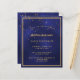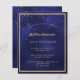 Une carte d'invitation branchée et moderne de 50e anniversaire (ou de n'importe quel âge) pour hommes, hommes, hommes. Un arrière - plan bleu foncé, bleu marine. La couleur bleue est inégale. Avec un cadre en faux or et des confettis dorés saupoudrés, des lettres de couleur dorée. Personnalisez et ajoutez les informations de votre parti. Dos : arrière - plan bleu avec saupoudrer de confetti.