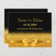 Elégante, classique, glamour et féminine style 80ème anniversaire (ou tout âge) à sauver la date. Un ruban et un arc de couleur or. Arrière - plan noir. Avec le texte : Enregistrer la Date sur l'avant écrite avec des lettres bloc modernes. Personnalisez et ajoutez la date et le nom/le texte.