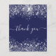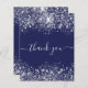 Une couleur bleu marine arrière - plan. Décoré avec de la poussière de parties scintillant en faux argent. Sur l'avant grand blanc écriture et le texte : Merci. Retour : Personnalisez et ajoutez Votre note de remerciement et votre nom. Le nom est écrit avec un script moderne et manuscrit avec des swashes. Pour que les swashes ne suppriment que le nom de l'échantillon, laissez les espaces ou émoticônes devant et après le nom.