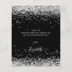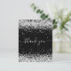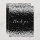 Un carte de remerciements d'anniversaire féminin et élégant. Une couleur noire arrière - plan. Avec de la poussière de parties scintillant en faux argent. Sur le devant, script écrit à grande main et texte : Merci. Retour : Personnalisez et ajoutez Votre note de remerciement et votre nom. Le nom est écrit avec un script de style moderne écrit à la main avec des swashes. Pour que les swashes ne suppriment que le nom de l'échantillon, laissez les espaces ou émoticônes devant et après le nom.