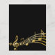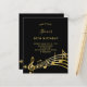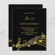 Une carte d'invitation branchée et moderne de 70e anniversaire (ou de n'importe quel âge) pour hommes et femmes. Un arrière - plan noir classique et des notes de musique, des lettres dorées. Personnalisez et ajoutez les informations de votre parti. Retour : Noir couleur fausse note de musique or.