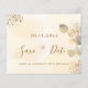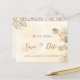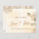 Une petite fille et tendance Enregistrer la carte Date pour une fête d'anniversaire de 40e (ou tout âge). Un arrière - plan doré à l'eau décoré de feuillage d'eucalyptus doré et de poussière de parties scintillant en faux or. Personnalisez et ajoutez une date, un nom et un texte. Lettres de couleur dorée. Le texte : Save the Date est écrit avec un grand script de style à la main tendance.