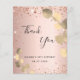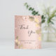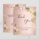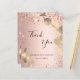 Un carte de remerciements pour un 50ème anniversaire (ou tout âge). Un arrière - plan rose à l'aspect faux métallique, décoré de faux éclats de parties scintillant et d'eucalyptus dorés. Sur le devant, un script écrit à grande main et le texte : Merci, votre texte, titre et une date. Retour : Personnalisez et ajoutez Votre note de remerciement et votre nom.