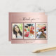 Un glamour 21ème anniversaire (ou l'âge de bonbon) Carte de remerciements personnalisé avec votre propre photo. Ajoutez 3 de vos photos d'anniversaire, la taille verticale, une date, un nom et la note de remerciement. Un arrière - plan rose à l'allure métallique tendance avec texte et cadre noir. Le texte : Merci sur l'avant et vos noms sur l'arrière sont écrits avec une écriture manuscrite stylisée avec des swashes.