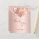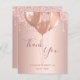 Un carte de remerciements pour un 16, 16e anniversaire de Sweet. Une couleur arrière - plan rose d'or faux métallique. Avec des gouttes de fausse parties scintillant, la peinture goutte à goutte et des ballons. Sur l'avant, grand rose noir couleur or à la main écriture et le texte : Merci, votre texte, titre et une date. Retour : Modèle pour Votre mot de remerciement et nom.