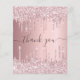 Un carte de remerciements d'anniversaire féminin et élégant. Une couleur arrière - plan simili rose vif. Avec des gouttes de fausse parties scintillant, la peinture goutte à goutte. Sur l'avant grand main écriture et le texte : Merci. Retour : Personnalisez et ajoutez Votre note de remerciement et votre nom. Le nom est écrit avec un script de style moderne écrit à la main avec des swashes. Pour que les swashes ne suppriment que le nom de l'échantillon, laissez les espaces ou émoticônes devant et après le nom.