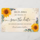 Une soirée branchée Save the Date pour un 40e anniversaire (ou tout autre âge). Un élégant arrière - plan blanc décoré de tournesols, d'eucalyptus, de verdure et de feuillage doré et de poussière de parties scintillant en faux or. Personnalisez et ajoutez une date, un nom et un texte. . Le texte : Save the Date est écrit avec un grand script de style à la main tendance avec des swashes.