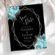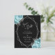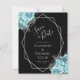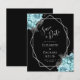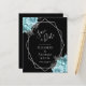 This elegant modern wedding save the date card features a silver geometric frame decorated with aqua and silver floral bouquets on a black background. The customizable text combines silver gray whimsical handwriting, copperplate and italic fonts. The reverse side is solid black.