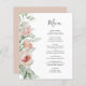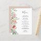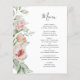 Le bord gauche de ce menu mariage romantique présente un bouquet floral d'aquarelle de pêche, de fleurs rousses et de verdure. Le texte personnalisable combine écriture manuscrite, copperplate et polices italiques en gris fusain sur un arrière - plan blanc. L'envers présente une couleur unie de coordination.