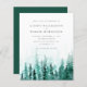 Si vous voulez célébrer votre mariage avec une fête rustique en plein air, ce faire-part de mariage sera idéal pour vous. Forêt d'aquarelle avec pins au fond. Vos détails sont présentés dans la typographie serif classique. Revenir à une couleur arrière - plan verte profonde. Dans le cadre de la sélection du budget ici sur Zazzle, ces invitations viennent en tailles limitées et stocks papier. Si vous avez besoin d'un stock de format ou de papier différent, cette conception peut être transférée dans un format standard 5x7 à l'aide de l'outil de transfert de conception pour plus d'options.