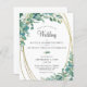 Des invitations de mariage botaniques modernes et élégantes imprimées sur papier léger, idéales pour les budgets conservateurs et/ou livrées à la main aux invités avec de la verdure d'eucalyptus, un cadre ovale de parties scintillant d'or imitation et du texte gris charbon doux. Contactez le concepteur via Zazzle Conversation ou makeitaboutyoustore@gmail.com si vous souhaitez modifier ce design, sur un autre produit ou des éléments de coordination.