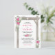 Invitations de mariage budget avec un simple arrière - plan blanc qui peut être changé à n'importe quelle couleur, un élégant tableau à fleurs rose & blanc à l'aquarelle sur une arche mariage rustique en bois, un coeur sculpté avec les initiales des couples, et un élégant modèle de mariage éditable.