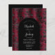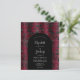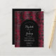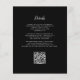 Cet élégant design présente une image arrière - plan moody de motif vintage faux velours floral damassé en bordeaux et noir. Personnalisez-le avec les noms de la mariée et du marié en script de calligraphie gris argenté et le texte restant dans une combinaison de sans serif, cuivre et italique en forme d'arc noir. L'envers offre de l'espace pour les détails mariages sur un arrière - plan noir solide, ainsi qu'un code QR que les invités peuvent scanner pour visiter votre site Web et RSVP.