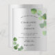Une faire-part de mariage moderne, élégante et minimaliste. Faux argent métallique d'aspect arrière - plan décoré de végétation eucalyptus, sprigs. Personnalisez et ajoutez vos noms et les détails du mariage. Lettres de couleur noire.