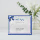 Un fond métallisé argenté faux, décoré de fausse poussière pailletée scintillante. Décoré avec des cadres bleu royal et un nœud papillon au dos. Personnalisez et ajoutez la date de réponse et vos noms.