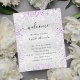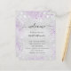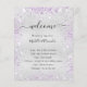 Un programme de mariage moderne et élégant, chronologie. Arrière - plan à l'aspect argent faux décoré de poussière de parties scintillant violet et faux argent. Personnalisez et ajoutez vos noms et les détails du mariage. Lettres de couleur noire.