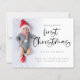 VEUILLEZ NOTER qu'il y a UNE carte par feuille. Carte photo personnalisé Baby First Christmas. Un prix bas SMALLER 4.5" x 5.6" carte plat pour vos salutations festives sur un stock de carte SEMI GLOSS 110 lb brillant (semblable à l'épaisseur d'une carte postale) VEUILLEZ NOTER : L'enveloppe fournie avec cette carte est légèrement plus grande que la carte elle-même. Très agréable de célébrer le premier Noël de votre bébé. Un script set ludique pour Noël et le reste du texte est facile à personnaliser. Remplacez l'exemple de photo par le vôtre. Un calque de superposition de dégradé se trouve au-dessus de votre photo, de sorte qu'il s'évanouit lorsqu'il atteint le centre avec le texte partiellement recouvert sur le dessus.