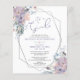 Élégante invitation de baby shower fille à petit budget imprimé sur un papier léger de 4,5x5,6 pouces avec de beaux bouquets fleurs sauvages à l'aquarelle dans les tons violet, violet, lilas, blush, pêche, bleu poussiéreux et rose et vert foncé accentué avec un cadre géométrique gris argent et couleur texte avec le titre IT'S A GIRL dans une calligraphie moderne et élégante manuscrite typographie de script. Idéal pour la livraison manuelle aux invités. ASSISTANCE : Pour obtenir de l'aide sur la modification/la personnalisation de la conception, le changement de couleur, le transfert de la conception vers un autre produit ou si vous souhaitez coordonner des éléments, contactez le concepteur AVANT DE COMMANDER via l'onglet MESSAGE Conversation Zazzle ou par courriel à l'adresse makeitaboutyoustore@gmail.com.