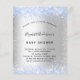 Pour une invitation élégante et baby shower, célébrer un bébé garçon. Un arrière - plan métallique à l'aspect faux argenté. Décoré de faux parties scintillant bleu clair. Personnalisez et ajoutez un nom et des détails. Écriture de style manuscrit moderne