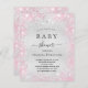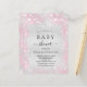 Un baby shower moderne et élégant, célébrant une petite fille. Arrière - plan métallique argent Faux décoré de poussière de parties scintillant rose faux. Personnalisez et ajoutez un nom et des détails du parti. Lettres de couleur noire.