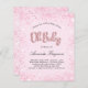 Pour un baby shower, célébrer un bébé garçon. Un arrière - plan rose pâle, rose vif. Décoré avec de la poussière de parties scintillant imitation. Personnalisez et ajoutez le nom de la mère à être et les détails de la fête. Oh Baby est écrit avec un script/police de style ballon.