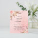 Pour un baby shower de style boho moderne. Un arrière - plan rose pâle, couleur aquarelle, dégradé, avec des étincelles d'or. Décoré de fleurs roses d'or et de rose, de roses et d'herbe de pampas. Personnalisez et ajoutez un nom et des détails du parti.