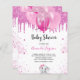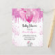 Pour un baby shower, célébrer une petite fille. Une arrière - plan blanche design. Décoré de faux parties scintillant, de ballons roses et d'une petite fille d'éléphant. Personnalisez et ajoutez le nom de la mère à être le nom et les détails de la fête. Le nom et le texte : Baby shower sont écrits avec un script de style écrit à la main