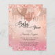 Pour un baby shower élégant. Un arrière - plan rose or et rose vif dégradé. Décoré d'or rose, de gouttes de parties scintillant rose, de la peinture goutte à goutte et des ballons. Personnalisez et ajoutez le nom de la mariée à être et les détails du parti. Le nom et le texte : Baby shower sont écrits avec un script de style écrit à la main