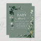 Budget Emerald - Sage Green Greenery Botanical Watercolor Spring Baby Shower Invitations sur arrière - plan noir, vert et blanc - comprend une belle et élégante typographie script avec feuilles botaniques modernes et verdure pour la fête spéciale Mère à être.