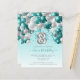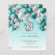 Cette invitation festive de 8ème anniversaire de fille présente une guirlande d'arc de ballon turquoise et d'argent sur un faux ballon d'argent numéro "8" et ruban turquoise et confetti. Personnalisez le texte avec le nom et l'anniversaire de votre enfant dans un élégant script turquoise d'écriture et les détails de la partie en gray sans serif police sur un turquoise ombre pâle arrière - plan.