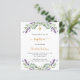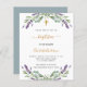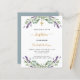 Un arrière - plan blanc décoré de fleurs de lavande et de verdure d'eucalyptus. Personnalisez et un nom et des détails de la cérémonie. Lettres noires et dorées.