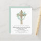 Budget Sage Green Girl's Eucalyptus and Wooden Cross Botanical Greenery Watercolor Christian Religious Baptism Invitations.