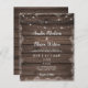 Célébrez votre journée spéciale avec ce charmant faire-part de mariage rustique. Doté d'un bel arrière - plan en bois de grange brun orné d'élégantes dentelles blanches et de lampes à cordes scintillantes, ce design reflète parfaitement une ambiance vintage et romantique. Personnalisez-le avec vos noms et vos détails mariages pour une conservation vraiment unique. Le design nostalgique évoque un sentiment de chaleur et d'élégance intemporelle, ce qui en fait l'endroit idéal pour un mariage rustique-chic ou de campagne. Cette invitation impressionne vos invités et donne le ton pour une fête mémorable. Commandez votre faire-part de mariage budgétaire dès aujourd'hui et commencez à planifier votre mariage de rêve tout en ne brisant pas la banque!