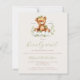 Cette mignonne invitation au baby shower présente un ours en peluche doux à l'aquarelle assis sur un nuage, entouré de sprigs de feuilles d'eucalyptus verts, au-dessus des mots "nous pouvons attendre longtemps" en écriture manuscrite verte. Personnalisez le texte avec le nom de la maman-to-be en écriture verte et les détails en police brun sans serif sur un arrière - plan beige. Idéal pour un baby shower sans distinction de genre.