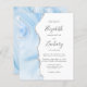 Le bord gauche de cette élégante faire-part de mariage moderne est orné d'une bordure d'aquarelle bleu pastel et recouverte d'une parties scintillant en faux argent. Le texte personnalisable combine écriture manuscrite, copperplate et polices italiques en gris fusain sur un arrière - plan blanc. L'envers est assorti d'un design d'agate bleu bébé et or.