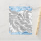Cet élégant menu mariage moderne comporte des bordures de haut et de bas d'agate d'aquarelle bleu pâle de bébé, paré de fausse parties scintillant argentée. Le texte personnalisable combine écriture fantaisiste grise et fontes sans serif sur une image arrière - plan de soie blanche ou de satin.