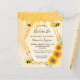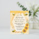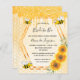 Elégante, amusante, rustique invitation à la douche nuptiale d'été. Un arrière - plan jaune avec un motif de nid d'abeille. Avec un cadre géométrique en faux or et des gouttes de parties scintillant en faux or. Décoré de tournesols jaunes et oranges et d'abeilles bourdonnantes. Avec le texte : Mariée à Abee et le nom de la mariée sur le devant écrit avec un script de style manuscrit moderne. Lettres noires. Retour : motif jaune nid d'abeille, gouttes de parties scintillant et une abeille.