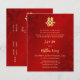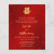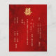 Cette version a un titre pour annoncer le mariage par les parents de la mariée et du marié. Cet élégant faire-part de mariage chinois est orné d'un double symbole de bonheur artistique en or sur un arrière - plan floral rouge rubis chatoyant. Noms de mariée et de mariée dans un élégant script manuscrit. Invitation à la cérémonie chinoise de faire-part de mariage ou de thé.