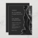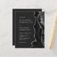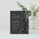 Le bord droit de cette élégante faire-part de mariage moderne est orné d'une bordure en aquarelle noire et d'une parties scintillant en faux argent. Le texte personnalisable combine les polices argentées grises serif, copperplate et italique sur un arrière - plan noir ardoise. L'envers offre de l'espace pour les détails mariages sur un arrière - plan noir en ardoise solide, ainsi qu'un code QR que les clients peuvent scanner pour visiter votre site Web et RSVP, ce qui permet d'économiser le coût d'impression et d'envoi de cartes RSVP séparées.