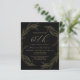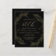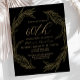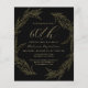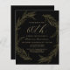 Cette invitation sophistiquée à la fête d'anniversaire du 60e anniversaire (ou à toute année) présente un dessin d'une ligne d'or d'une couronne de feuillage sur un arrière - plan noir. Le numéro "60e" et le nom de l'invité d'honneur apparaissent dans un élégant script d'écriture dorée, le reste du texte personnalisable en police sans serif. Le dos de la carte est noir.